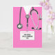 Carte de graduation personnalisée avec gommages d'hôpital rose. Modifier le texte pour ajouter le nom de l'infirmière ou du médecin.