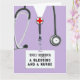Conception de carte de fin d'études personnalisée pour infirmière avec un uniforme de l'hôpital lavande pour la remise de diplômes d'école d'infirmières. Modifier le texte pour ajouter le nom.