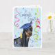 Félicitez votre diplômé préféré avec un cadeau comportant un diplômé mignon de Pinscher de dobermann portant une taloche parmi une bourrasque des confettis.