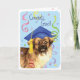 Félicitez votre diplômé préféré avec un cadeau avec un mignon diplômé de l'espagnol tibétain portant un mortier au milieu d'une flûte de confettis.