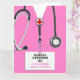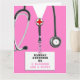 Carte de remise des diplômes de l'école de soins infirmiers comportant des gommages d'hôpital roses. Pour personnaliser modifier le texte pour ajouter le nom de l'infirmière diplômée.