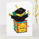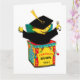 Carte de diplômé créative avec humour de boîte à surprise de dessin animé. Modifier le texte pour inclure le nom du diplômé et l'année de promotion.