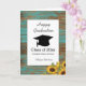 C'est une jolie carte de graduation rustique pour elle, qui peut être personnalisée sur le front avec l'année de graduation, le nom de l'école et le nom du diplômé. Il dispose d'un grand casquette et d'un design rustique en bois turquoise dans l'arrière - plan avec des tournesols jaunes en bas à droite. L'intérieur de cette carte d'obtention de diplômes vous offre des félicitations sincères, que vous pouvez facilement personnaliser si vous le souhaitez. L'arrière est décoré dans un style rustique et vous offre un espace personnalisable avec l'année de remise des diplômes. Cela lui ferait un cadeau unique pour une diplômée.