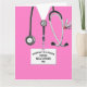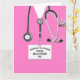 Carte de diplôme d'une école de médecine créative pour médecin avec gommage à l'hôpital rose et drôle couteau suisse dans la poche. Modifiez le texte pour ajouter le nom du médecin.
