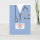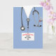 Carte d'obtention de diplôme Médicale pour tout médecin, avec des gommages à l'hôpital et un couteau suisse dans la poche. Modifiez le texte pour ajouter le nom du médecin.