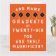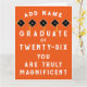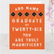 Carte de diplômé unique avec un design de la promotion 26 et un rhyme motivant sur fond orange. Pour personnaliser, éditez le texte pour ajouter le nom du diplômé.
