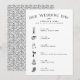 Gardez votre journée de mariage sur la bonne voie avec nos cartes d'itinéraire élégantes, dotées d'une typographie noire nette et d'illustrations charmantes. Le design comprend vos noms, la date et le lieu du mariage, ainsi que six champs pré-remplis pour les moments importants de votre journée : préparation de la mariée, cérémonie, cocktail, toasts, dîner et danse, coupe du gâteau et lancer du bouquet. Distribuez-les à votre cortège de mariage et à vos prestataires pour une journée fluide et sans stress ! Vous avez besoin d'illustrations différentes ou d'une mise en page personnalisée ? Contactez Kristen via le lien "Contacter ce designer" sur cette page.