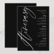 Gardez votre célébration élégamment organisée avec cet itinéraire chic de week-end noir. Conçu avec une mise en page minimaliste, ce calendrier est parfait pour les enterrements de vie de jeune fille, les week-ends de poules, les anniversaires marquants ou tout autre séjour spécial. Avec un design noir moderne et une typographie claire, c'est une façon élégante de partager les événements du week-end avec vos invités et de définir le ton pour une occasion mémorable.