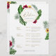itinéraire chronologique mariage avec design tropical, feuilles de palmiers verdoyants, géométrie florale et dorée jaune et rouge.
