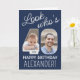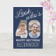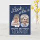 Regarde qui a 40 ans ! Créez votre propre voeu d'anniversaire heureux unique pour un membre de la famille ou un ami avec un nom personnalisé carte de voeux pliée de 40e anniversaire. Les photos et le libellé de ce modèle sont simples à customiser et toutes les couleurs et les polices sont faciles à modifier avec l'outil de design Zazzle. Le design bleu marine et blanc présente une élégante calligraphie manuscrite, un mélange élégant de typographie moderne et vintage, et deux images de votre choix. Le design neutre pour les femmes convient aussi bien à un homme qu'à une femme. Joyeux quarantième anniversaire !