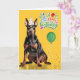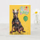 Carte Doberman Dog Party Hat Yellow Birthday