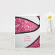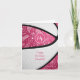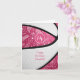Cette mignonne invitation de carte d'anniversaire de basket-ball présente l'image réaliste d'un ballon stylisé abstrait surdimensionné qui a recoloré alternant panneaux rose et blanc sur le devant de la carte - un doodle motif de paislies, fleurs et plumes en blanc couvre les panneaux roses du basket-ball - personnaliser avec votre propre message d'anniversaire - par katz_d_zynes