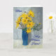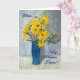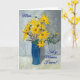 Un joli jour de mère avec la salutation dans Gallois et un vase bleu de tournesols d'or, d'une peinture en pastel d'huile par Judy Adamson.