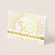 Dîtes heureux 50e anniversaire dans le style avec le chic luxe brillant de papier doré véritable. Tout le libellé de ce modèle est simple à customiser. Changez le texte "50 et fabuleux" sur le devant pour chaque anniversaire de jalon ou supprimez le message à l'intérieur pour une carte blanche. Le design moderne, blanc et or, est orné d'une bordure de confetti aux lignes éclatantes et d'une typographie d'art déco vintage classique. Veuillez noter que le texte intérieur est imprimé en couleur et non en papier métallique. Pour une touche de finition élégante et unique, laissez-vous tenter par une carte de signe avec un stylo or. Cette élégante carte d'anniversaire pliée et luxueuse est une façon simple et élégante de dire Joyeux Cinquantième anniversaire!