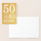 Cette carte humoristique de 50ème anniversaire comporte les mots "50 est le nouveau 40 Joyeux Anniversaire" en blanc contre feuille d'or. Pour ajouter un message à l'intérieur de la carte, cliquez sur le bouton personnaliser. *Veuillez noter que le filigrane Zazzle qui apparaît dans l'aperçu du zoom n'apparaîtra PAS sur le produit imprimé final. © Type de nouveau