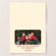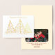 Cette très simple Gold Foil Bonnes Fêtes Card est une façon spéciale de souhaiter à vos amis et à l'être aimé des vacances heureuses. Les arbres de Noël en feuille d'or avec un espace à l'intérieur pour partager une photo et ajouter vos propres voeux et noms de Noël. Le design graphique est d'inspiration art déco et la feuille d'or est élégante et élégante.