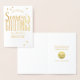 Cette carte de vacances d'entreprise en feuille d'or moderne comporte un arrière - plan blanc avec une typographie moderne en feuille d'or qui dit "Joyeux et brillants, Bonnes Fêtes, de nous tous à, votre nom d'entreprise." L'écriture intérieure en faux or dit : "Des voeux chaleureux pour une saison joyeuse et le plus heureux des Nouvel An !" Il y a aussi un endroit pour votre logo et signature d'entreprise, qui peuvent tous être personnalisés. Conçu par l'artiste © Tim Coffey.