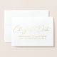 Ces élégantes cartes de changement de date présentent un véritable design en feuille avec police script. Personnalisez le texte sur le devant et à l'intérieur.