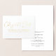 Ces élégantes cartes de changement de date présentent un véritable design en feuille avec police de script. Personnalisez le texte sur le devant et à l'intérieur.