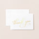 Montrez votre appréciation avec une touche de sophistication grâce à ce carte de remerciements tout-temps avec un script "Merci" étonnant sur le devant, disponible dans votre choix d'une feuille d'or ou d'argent authentique. L'intérieur est une toile vierge pour votre message. Vous pouvez ajouter une note personnalisée et votre nom dans une police serif classique, ou laisser vide pour les notes manuscrites.