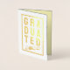 Pour les nouveaux diplômés. Une carte de félicitations pour diplômé dit "diplômé" et montre l'année de remise des diplômes. Le design est contenu dans un cadre de forme oblongue. Texte extérieur en feuille métallique.
