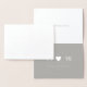 Les mots "Merci" dans le processus d'impression de feuilles d'argent, personnalisées avec ses initiales et son coeur blanc d'amour... et texte personnalisé "pour célébrer avec nous..."