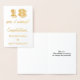 Cette carte de voeux de mariage en papier doré présente un message comme "18 ans de mariage ! Félicitations, Georgiana & Jefferson !" sur le devant. Les noms du couple marié ("Georgiana & Jefferson") peuvent être modifiés pour personnaliser la carte. L'intérieur présente un message personnalisable comme "Que votre 18e anniversaire de mariage soit heureux et joyeux !". Elle pourrait être offerte à un couple marié qui célèbre son dix-huitième anniversaire de mariage. [~Z0000048]