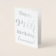 Cette conception simple et élégante de carte d'anniversaire en feuille d'argent comporte un message comme "Happy 94th Birthday, Francisco!" sur le devant. Le nom ("Francisco") peut être modifié pour personnaliser la carte. L'intérieur comporte un message personnalisable comme "Que votre 94e anniversaire soit heureux et joyeux !". On pourrait le donner à quelqu'un qui célèbre son quatre-vingt-quatorzième anniversaire. [~Z0000009]