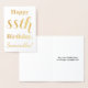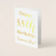 Cette conception simple et élégante de carte d'anniversaire en feuille d'or comporte un message comme "Joyeux 88e anniversaire, Samantha!" sur le devant. Le nom ("Samantha") peut être modifié pour personnaliser la carte. L'intérieur comporte un message personnalisable comme "Que votre 88e anniversaire soit heureux et joyeux !". Il pourrait être donné à quelqu'un qui célèbre son quatre-vingt-huitième anniversaire. [~Z0000005]