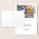 Notre couleur design MERRY correspond aux étoiles et chute de motif de neige sur la carte est à l'intérieur de votre photo. Il suffit de télécharger une photo et la technologie utilise cette photo pour créer des accents correspondants. Neat, non ? N'importe quelle photo fera, mais nous recommandons des couleurs fortes et audacieuses avec des arrière - plans simples. Le style texto allie écriture moderne avec bloc moderne et, combiné avec les détails de feuille à l'avant, offre une présentation élégante.