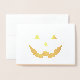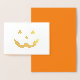 Cute orange Jack-o'-lantern sculpté citrouille face éffrayant effrayant drôle moderne feuille d'Halloween carte de voeux /Trick ou invitation à traiter. Extérieur en feuille d'or ou d'argent Jack-o'-lantern graphiques et intérieur couleur orange solide. Disponible en différentes couleurs et tailles. Consultez le reste de la collection pour obtenir des fournitures et des décorations supplémentaires, coordonner et apparier les articles.