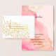 Carte Dorée Joyeux anniversaire. Aquarelle rose botanique