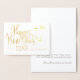 Personnalisé simple et moderne or blanc Nouvel An salue carte feuille d'or avec script de calligraphie manuscrit et flûtes de champagne.
