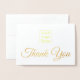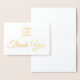 Le vrai script de feuille d'or dit "Merci" sur le devant de la carte. Au-dessus du texte, il y a une image d'affichage que vous pouvez remplacer par le logo de votre entreprise. L'intérieur de ce carte de remerciements de marque est vide pour votre message manuscrit.