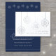Envoyez simplement des souhaits de vacances élégants à vos clients, clients et associés d'affaires avec des cartes de fin de année de papier peint de marque élégante. Tout le libellé de ce modèle de carte pliée est simple à personnaliser. Les ornements de Noël, le logo et le texte sur le côté avant sont imprimés avec du vrai papier métallique argenté sur un arrière - plan blanc de base. (Pour obtenir de meilleurs résultats, l'image du logo téléchargée doit être en noir avec un arrière - plan blanc ou transparent.) Le design minimaliste moderne bleu marine et blanc présente des ornements élégants de flocs de neige et une typographie classique simple. Veuillez noter que l'intérieur est imprimé en couleur et non en papier métallique. Disponibles en petites quantités et en vrac, ces cartes conviennent aux petites entreprises et aux professionnels d'entreprise. Les clients d'affaires, les familles et les amis aimeront le luxe sophistiqué de ces cartes de voeux de vacances personnalisées. JOYEUSES FÊTES !