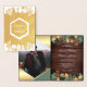 Éblouissez vos invités avec cette élégante invitation de mariage pliée avec de la feuille d'or à l'extérieur et de beaux feuilles verts et de faux accents de feuille d'or à l'intérieur. Ajoutez simplement les détails de votre événement sur ce modèle facile à utiliser et ornez cette carte avec votre photo préférée pour en faire une invitation unique.