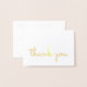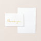 Un design moderne simple et d'inspiration rétro avec les mots "merci" en caractères d'écriture manuscrite en papier or véritable. Un design polyvalent que vous pouvez utiliser pour n'importe quelle occasion quand vous voulez remercier quelqu'un de spécial! Idéal pour les mariages. Disponible également en feuille d'argent réel.