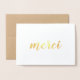 Cette belle carte en feuille d'or a le mot français "merci" dans le script brush (brushstroke). L'intérieur de la carte est vide pour votre message personnel. Parfait pour chaque fois que vous souhaitez remercier quelqu'un pour un cadeau ou une gentillesse.