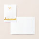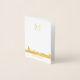 Simple, mais élégant est cette carte de note avec une silhouette en feuille d'or de l'horizon de New York City en bas. En haut, votre monogramme en or. En dessous de l'image de la ligne d'horizon se trouve un autre champ de texte personnalisé qui dit actuellement New York City. L'arrière de la carte a la même image d'horizon, mais sans le texte. L'intérieur est laissé vide pour votre propre message. Versatile et mémorable !