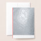 Cette superbe carte en feuille de Noël présente une image art numérique d'un mignon cheval à bascule de style scandinave. Le cheval est rouge avec une crinière rouge foncé, la queue et les sabots. Le cheval sympathique sourit. Il a une selle blanche et des rois avec de jolis motifs de style Scandi rouge sur la selle, y compris le soleil, la lune et les étoiles, les coeurs et les fleurs. La base du cheval rocking est rouge et est couverte de feuilles blancs. Le design a été inspiré par le cheval suédois Dala. Il y a du texte personnalisé sur le devant pour que vous puissiez inclure un message. Il y a plus de texte à l'intérieur pour que vous puissiez taper un message de bienvenue. Le texte avant et le design sont en belle feuille d'argent pour les faire vraiment ressortir.