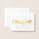 Carte Dorée Obrigado portuguese script merci de l'homme or