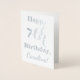 Cette carte d'anniversaire en feuille d'argent simple et élégante comporte un message comme "Happy 7th Birthday, Caroline!" sur le devant. Le nom ("Caroline") peut être modifié pour personnaliser la carte. L'intérieur comporte un message personnalisable comme "Que votre 7ème anniversaire soit heureux et joyeux !". On pourrait le donner à quelqu'un qui célèbre son septième anniversaire. [~Z0000009]