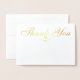 Une belle façon de remercier vos invités d'avoir assisté à votre douche nuptiale, cette carte en feuille d'or présente le "Merci" écrit dans de grandes lettres en feuille d'or, avec une robe mariage en dessous. Il y a trois beaux papillons à gauche de la robe, un message chaleureux vous attend à l'intérieur. Achetez le vôtre aujourd'hui ! Mariage Gown : https://www.etsy.com/shop/WinchesterLambourne