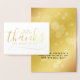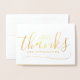 La façon élégante et élégante de remercier la famille et les amis d'avoir assisté à votre journée spéciale, événement ou jalon de fête, cette carte comporte un "merci" manuscrit en feuille d'or sur la couverture et un message spécial d'appréciation pour les invités sur les panneaux intérieurs d'un arrière - plan en dégradé d'or. Customisez le texte et les éléments visuels des panneaux avant, intérieur et arrière selon vos besoins. Design © W.H. Sim. Voir plus sur zazzle.com/expressionsoccasions