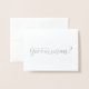 "Serez-Vous Mon Groomsman ?" Script moderne Argent Foil Card avec le titre "Will You Be My Groomsman?" en véritable feuille d'argent style de police de script moderne sur le côté avant avec le texte gris personnalisé à l'intérieur de la carte.