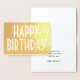 Disposez d'un joyeux anniversaire dans le style avec une carte en papier plastique simple et élégante, disponible dans votre choix d'or ou d'argent. Tout libellé sur ce modèle est simple à customiser ou à supprimer. Le design minimaliste moderne présente une typographie art déco vintage chic. Pour une touche de finition élégante et unique, une carte de signe avec un stylo à encre métallique.