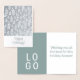 Un modèle de carte de vacances d'affaires avec un logo d'entreprise réservé. Sur le devant, il y a un motif répétitif de feuillage feuillu et un salut saisonnier qui peut être modifié si un autre salut convient. À l'intérieur, il y a du texte personnalisé pour mettre un message saisonnier personnalisé en vert sur le blanc et un logo d'entreprise sur une couleur verte. Il y a aussi beaucoup d'espace blanc pour écrire à la main dans un message ou un message.