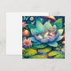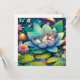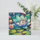 Joli petit fée dormant sur une fleur de lotus sur un tapis de lis avec fleurs et arrière - plan de champignons. Belle illustration de style conte de fées. Carte vierge.