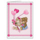 Ours en peluche. La petite ours a un bouquet de coeurs de ballons et de roses roses. Le petit ours en peluche la regarde avec amour. Customisez l'espace intérieur avec votre salutation et signature... La carte a un verset romantique à l'intérieur.