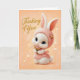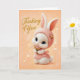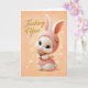 Carte Doux bébé lapin en robe pêche pensant à vous